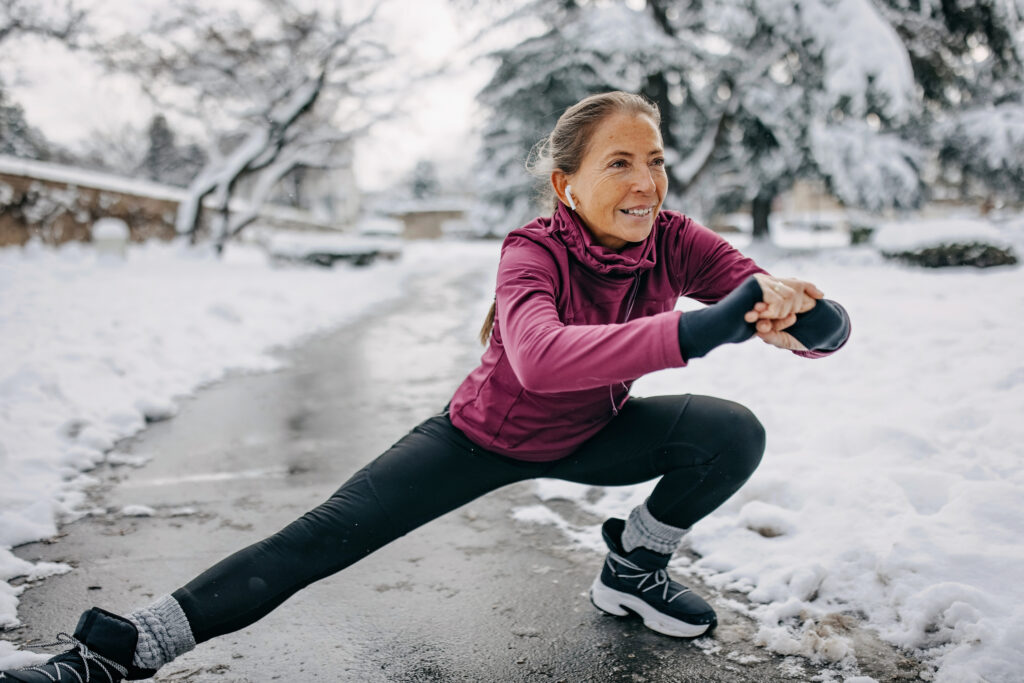 To make winter workouts easier, she advocates for removing as many barriers as possible. “I sleep in my workout clothes so I can’t talk myself out of exercising in the morning. I also set my thermostat to warm up before I get out of bed. It’s a small thing, but it makes a big difference on cold mornings.”